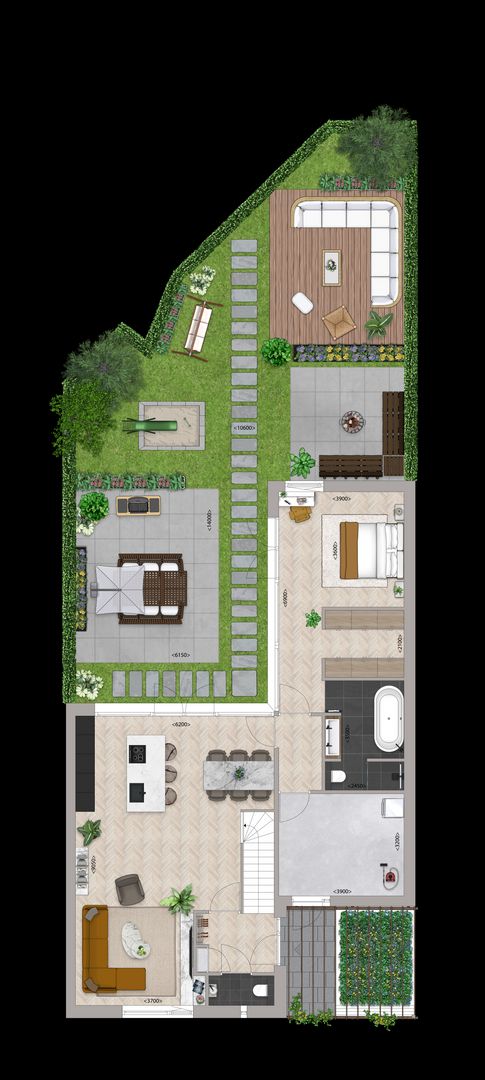 Bij binnenkomst voel je meteen de gastvrijheid. De grote raampartijen laten het daglicht rijkelijk binnenstromen voor een naadloze verbinding met de achtertuin. De woonvertrekken, verdeeld in twee delen, nodigen uit tot jouw unieke indeling. Wordt het een extra grote zithoek met een aparte leefkeuken? of kies je voor een eigen vleugel met een bad- en slaapkamer op de begane grond?